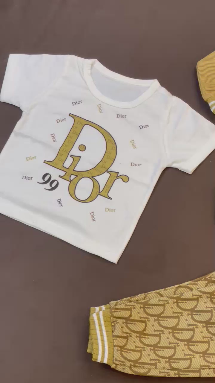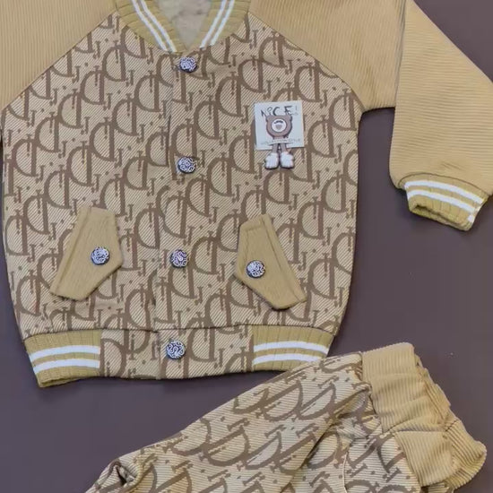 Boys Mustard Monogram Bomber Set (3-Piece: Jacket Shirt & Short)