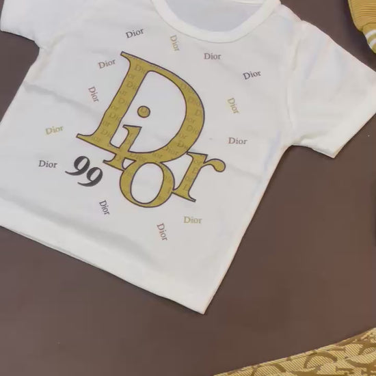 A smart everyday combo featuring a soft crew-neck tee and a varsity-style bomber jacket in a mustard monogram. Ribbed cuffs and hem keep the jacket neat, and the tee is comfy for all-day wear. Easy to pair with jeans or any jogger you already have.