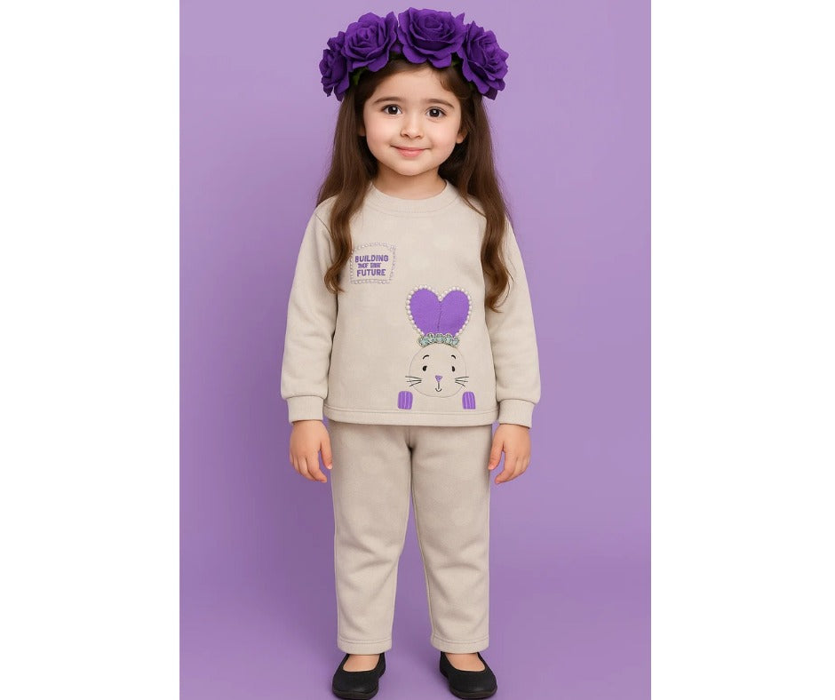 Wrap your little one in warmth and style with our Girls Beige Bunny Jogger Set. Made from soft, breathable fabric, this outfit is perfect for chilly days, school wear, or casual outings. The cute bunny embroidery with pearl accents adds a playful touch, while the ribbed cuffs ensure a snug fit. Designed with comfort in mind, this winter set is both trendy and cozy – making it a must-have for your child’s wardrobe.