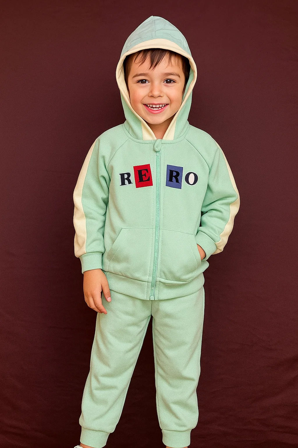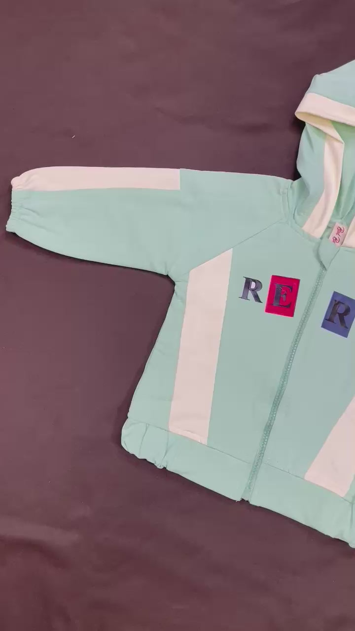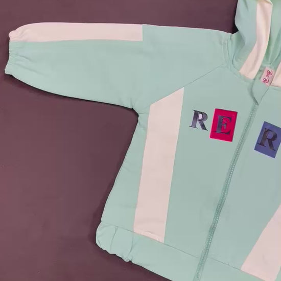 Girls Zip-Up Hoodie – Mint Green Colorblock Jacket 2PC