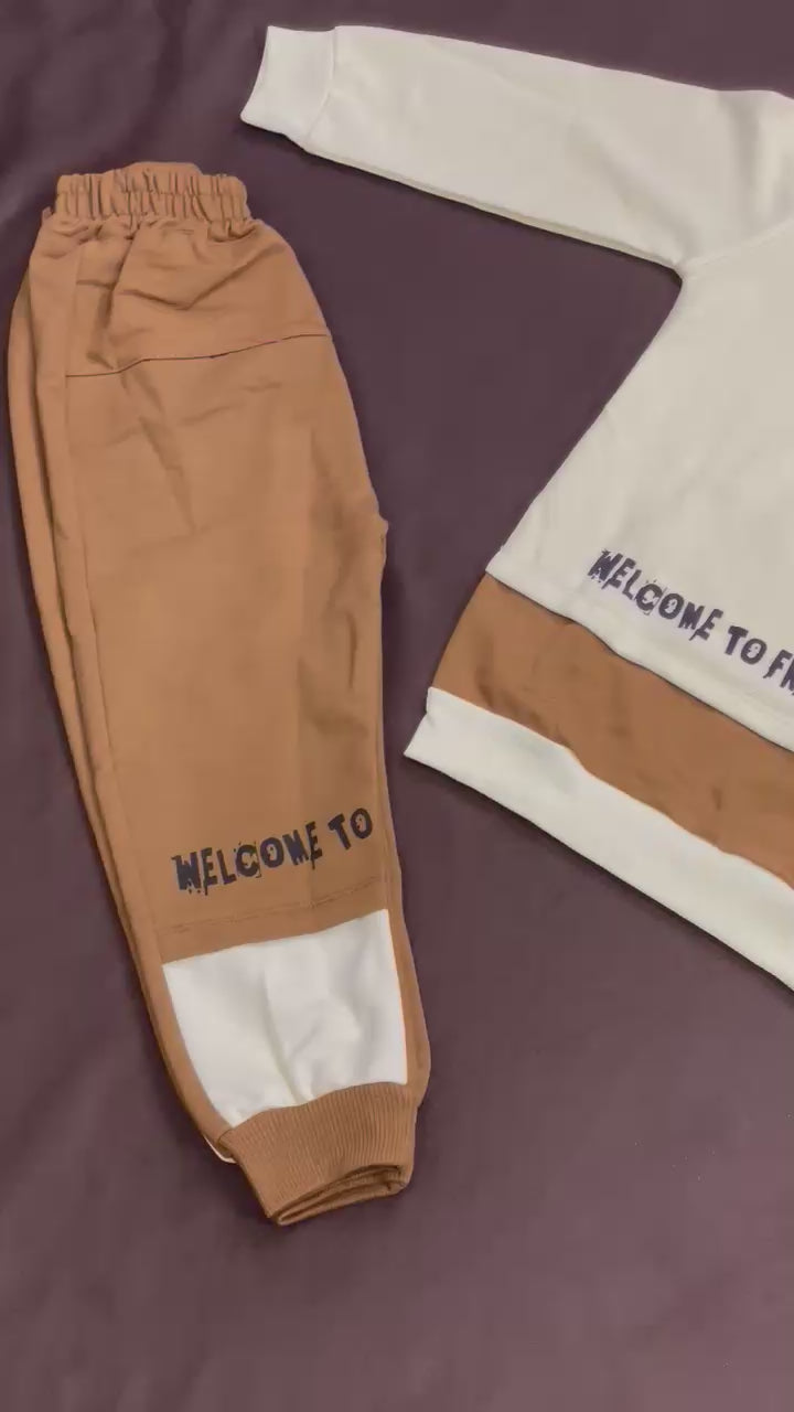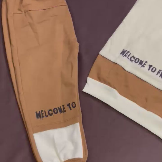 Warm, comfy, and adorable. This cream kids winter hoodie features a soft fleece feel, ribbed cuffs and hem, and a playful 3D teddy strap patch kids love. The cream and caramel color block pairs easily with any bottoms, making it perfect for school, play, and weekends. Quality stitching keeps it looking fresh after every wash.