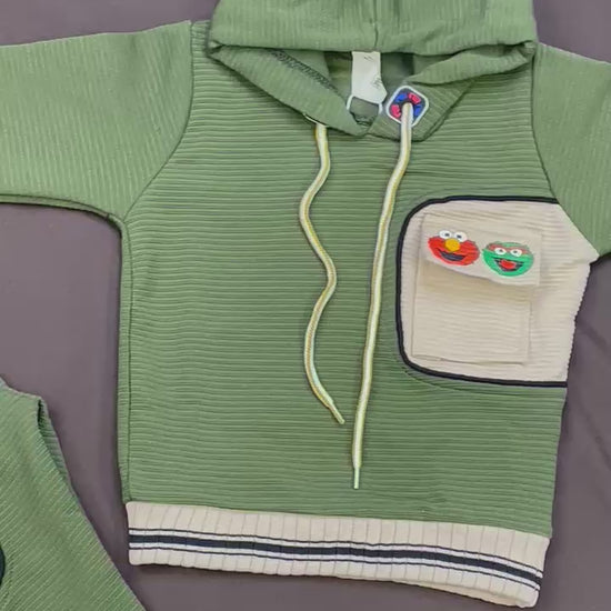 Kids Winter Hoodie – Olive Green Patch-Pocket Sweatshirt