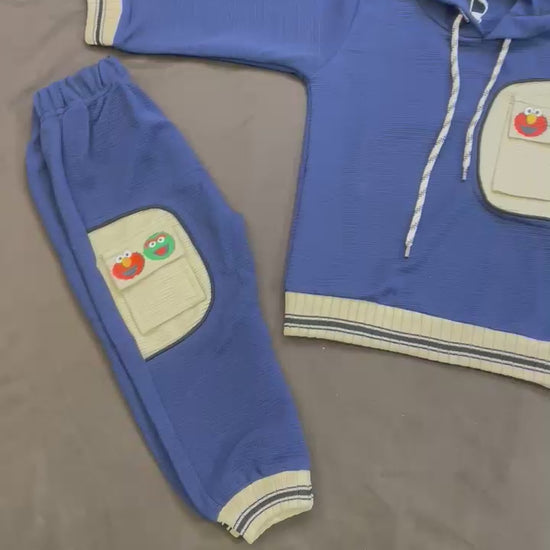Kids Winter Hoodie – Royal Blue Patch-Pocket Sweatshirt 2Pc