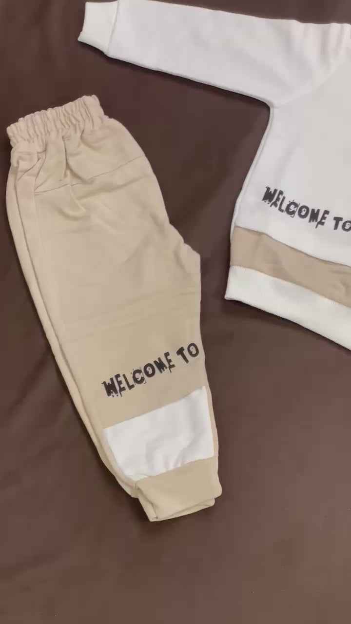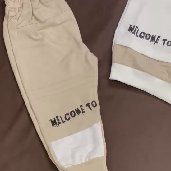 Kids Winter Hoodie – White Teddy Strap Patch Sweatshirt 2Pc