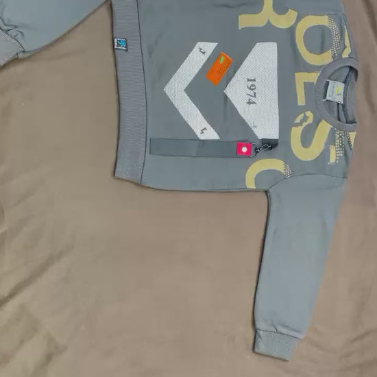 Keep him warm and stylish with this charcoal kids winter sweatshirt. Soft fleece inside, ribbed neck, cuffs, and hem for a snug fit, and a bold front graphic that stands out at school or play. Built for everyday comfort and easy care.